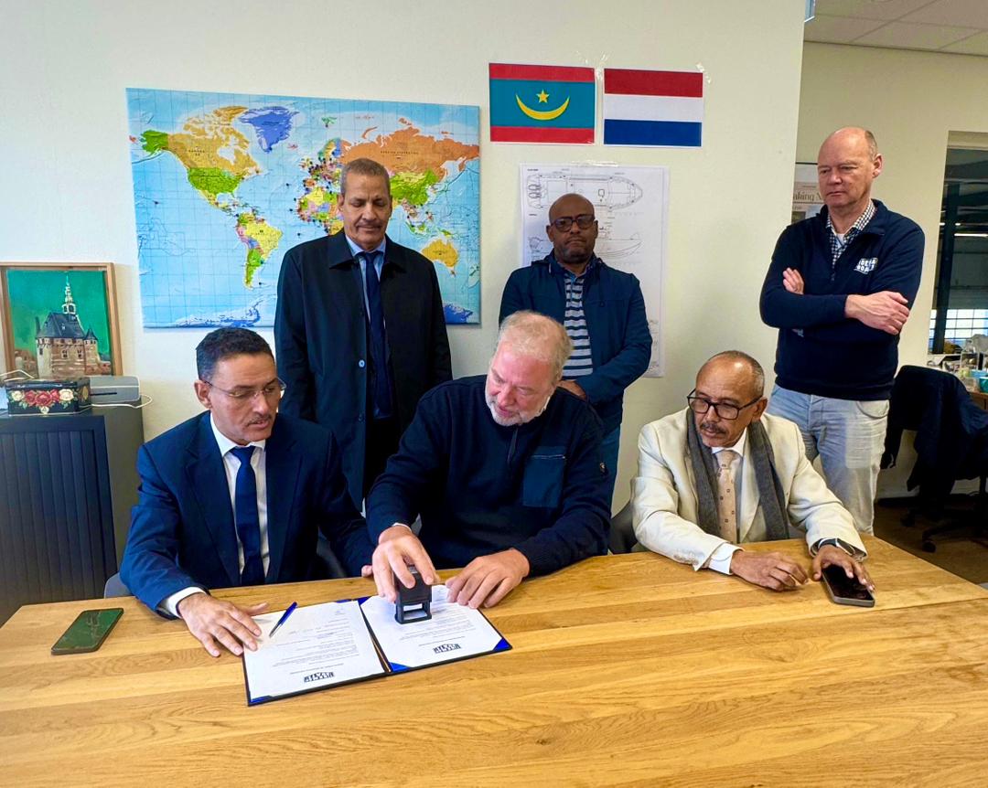 في يوم الثلاثاء 17 فبراير 2026، تم إجراء الاستلام المؤقت لزورق الإرشاد البحري الجديد “مقامة” في حوض بناء السفن التابع لشركة Tide Man Boats بمدينة أمستردام، وذلك في إطار تعزيز وتحديث الوسائل البحرية. وقد جرت مراسم الاستلام تحت إشراف المدير العام، السيد لمرابط ولد بناهي، وبحضور مدير شركة بناء السفن السيد تايد مان، إلى جانب عدد من المسؤولين من الطرفين، من بينهم السيد اعل ولد السيد، مدير القبطانية، والسيد عثمان الشريف ملعينين، مدير الأمن والسلامة المينائية، والسيد محمد ولد الشين، رئيس لجنة إبرام الصفقات العمومية.